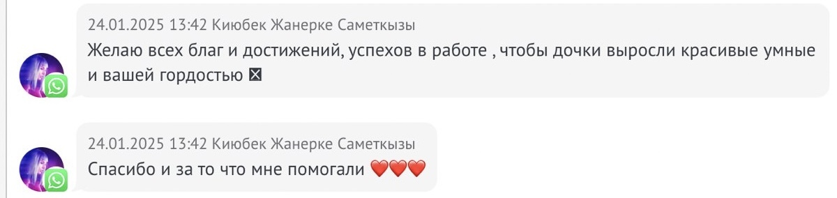 Самое сложное было - оставить своего сына дома с родителями. Но, оно того стоило, кандидатка уже работает год, и заработала более 9 000 000 тенге. В Кувейте хорошо то, что не зависишь от потока. Не переживаешь за зарплату, стабильно получаешь 1500$. Сейчас закрыты все долги и уже строятся большие планы на будущее!