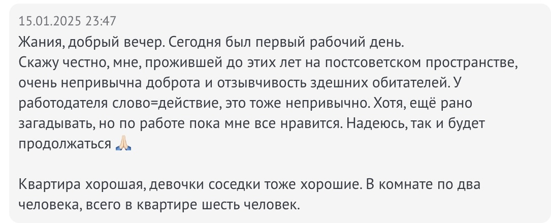 Мы подбираем под ваши запросы лучшие предложения, условия проживания и заработка.
